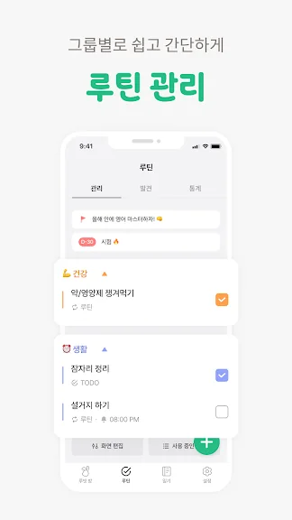 - 루틴, 투두, 새로운 습관 모두 한 곳에서 관리해요