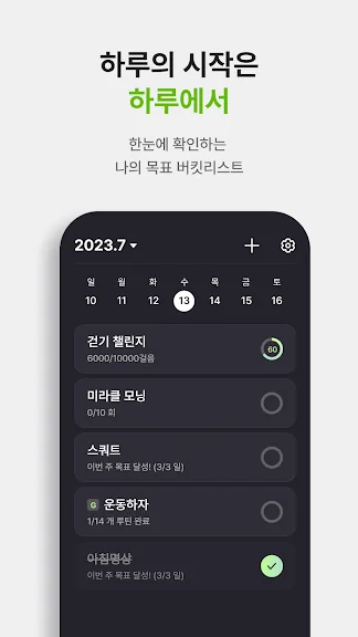 - 중요한 목표와 루틴, 습관, 투두를 함께 관리할 수 있어요
