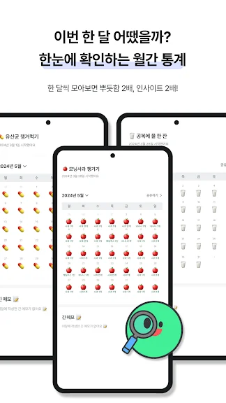- 월간 통계는 이미지로 저장 가능해요. 한 달 성취를 모아 공유해봐요.