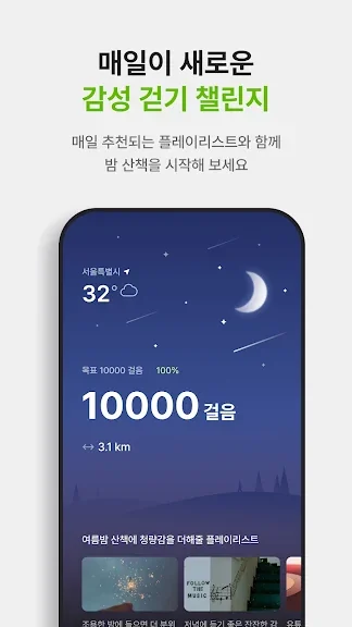 똑같은 걷기 챌린지는 이제 그만! 매일 추천되는 플레이리스트와 밤 산책을 하며 건강과 감성을 모두 챙겨 보세요!