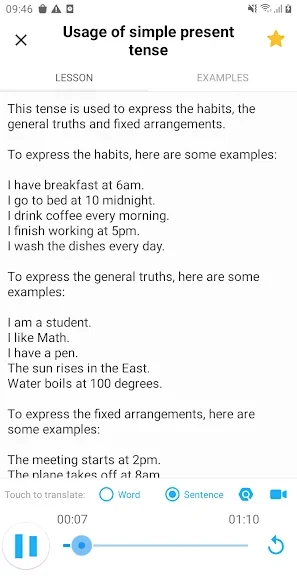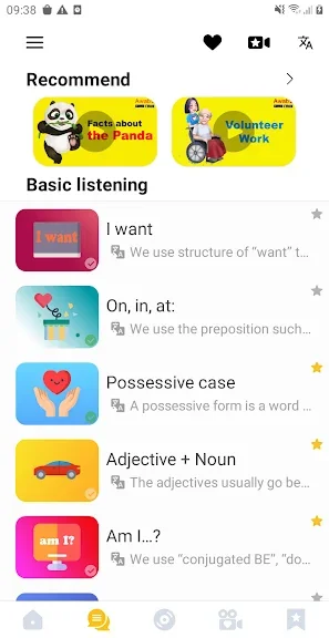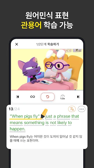 스피킹 모드로 학습하면 회화 연습도 할 수 있어요.