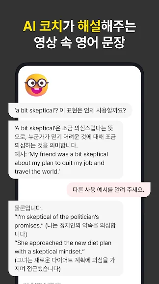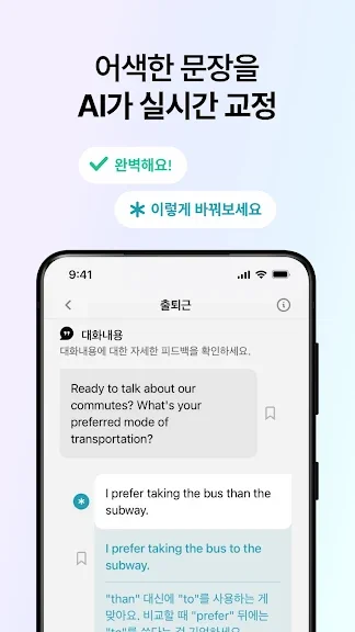 AI 레슨을 통해 쌍방향으로 프리토킹하며 실전 감각을 키워 보세요! 스픽 튜터가 내가 한 모든 말을 모두 교정하고, 어떻게 말해야 더 자연스러운지 알려줘요 단어 및 자주 틀리는 문법 등 필요한 강의도 만들어 드려요.
