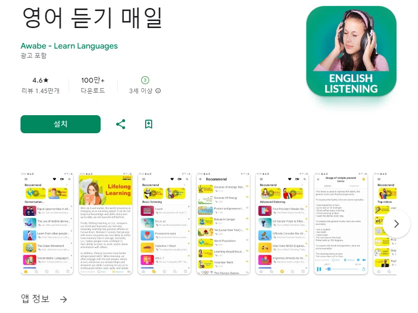 아래는 영어 듣기 매일 어플에 대한 스크린샷 정보입니다.
