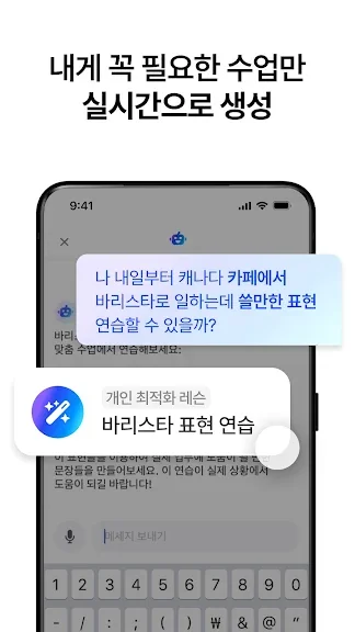 AI 레슨을 통해 쌍방향으로 프리토킹하며 실전 감각을 키워 보세요! 스픽 튜터가 내가 한 모든 말을 모두 교정하고, 어떻게 말해야 더 자연스러운지 알려줘요 단어 및 자주 틀리는 문법 등 필요한 강의도 만들어 드려요.