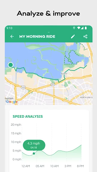 통합된 자전거 속도계와 주행 기록 외에도 이 앱은 성능에 대한 흥미로운 통찰력을 제공하므로 항상 진행 상황을 추적할 수 있습니다.
