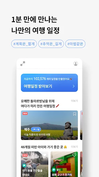 당장이라도 훌쩍 떠날 수 있도록, 출발부터 마무리까지 완성된 여행 일정을 만들어드려요. 당일치기부터 2박 3일까지 원하는 여행기간에 맞는 일정을 만들 수 있어요.