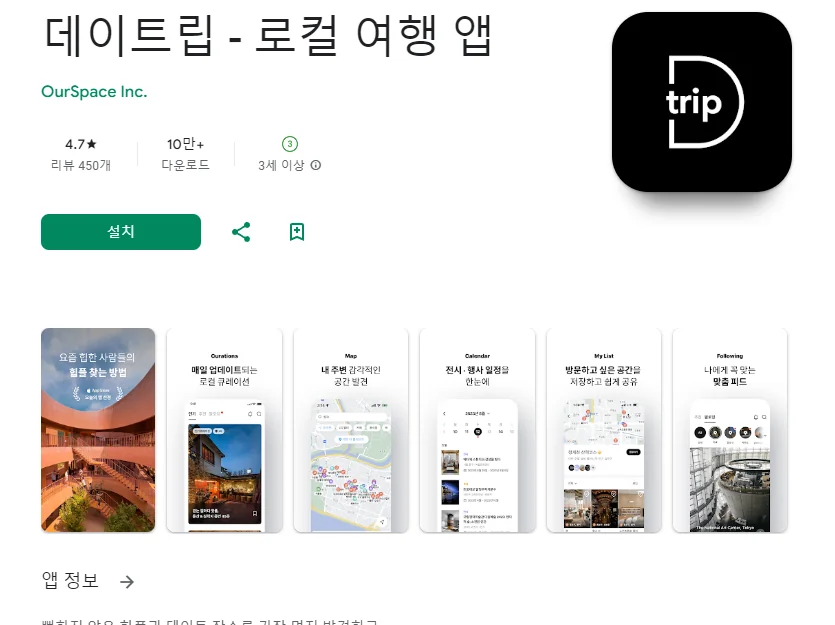 이 어플은 구글플레이스토어에서 "데이트 코스 추천"로 검색했을때 3번째로 나오는 어플입니다. 아래는 데이트립 - 로컬 여행 앱 어플에 대한 자세한 설명이니 참고하세요.