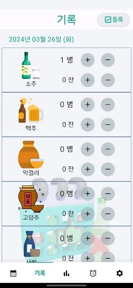 - 내가 얼마나 마시고 있는지 기록하세요.