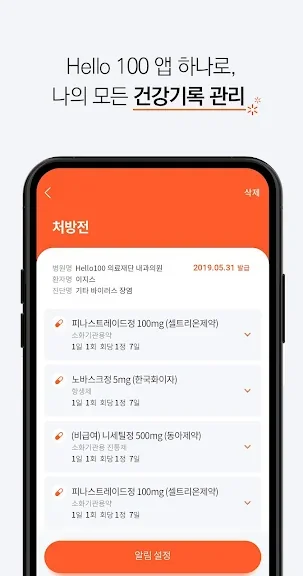 - 약먹는 걸 깜빡해도 괜찮아요! 처방내용대로 알림설정만 해놓으면 복약알림을 받을 수 있습니다.