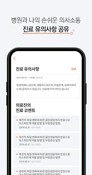 * 진료 후 병원에서 증상에 맞춰 필요한 조치를 푸시로 안내해드려요.