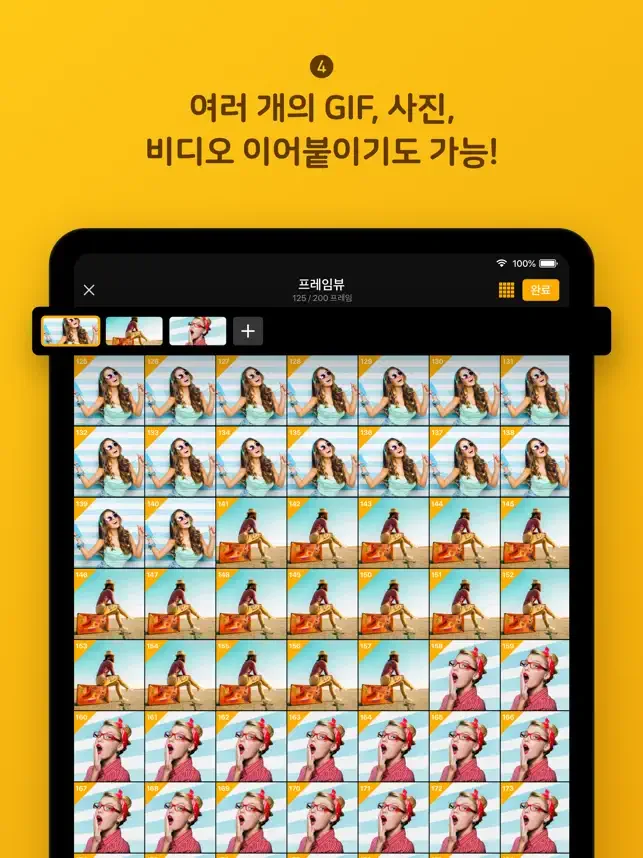 - 편집하는 동안 필요에 따라 프레임 추가, 제거, 재정렬 가능