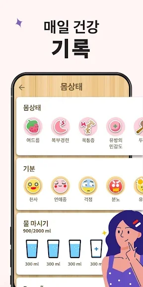 매일 생리에 따른 기분과 몸상태 체크 기능