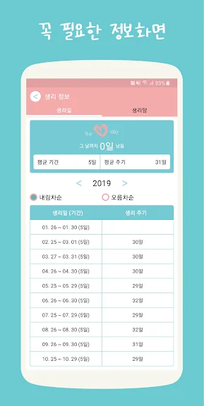 이 앱의 정확한 미리 알림을 사용하시면 향후 주기, 가임기, 배란기를 예측하는데 좋습니다.