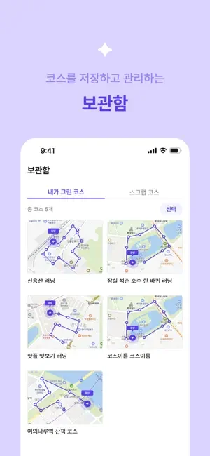 오늘은 새롭게 발견한 코스를 스크랩하여 달려 보세요.