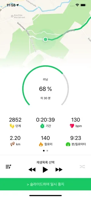 음악앱을 실행하고 듣고싶은 음악을 재생하면 스트리밍으로 음악을 들으면서 달리기를 진행할 수 있습니다.