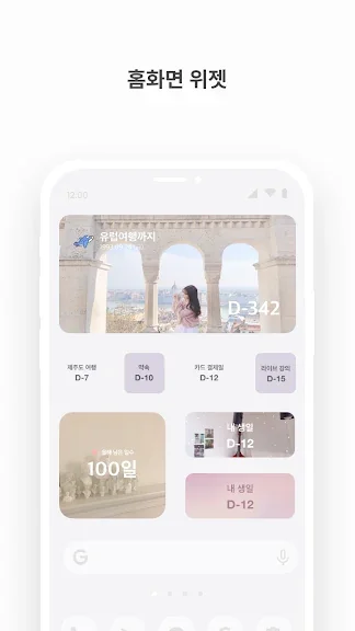 자동 계산된 기념일 리스트는 100일 단위로 제공되어 일정을 손쉽게 관리할 수 있습니다. 디데이 7일, 3일, 1일 전 및 당일 알림 기능은 중요한 날을 놓치는 일이 없도록 도와줍니다. 또한, 스티커와 다양한 배경 효과, 글꼴, 색상 등으로 자신만의 디데이를 꾸밀 수 있으며, 홈 화면 위젯에서 원하는 디자인을 바로 확인할 수 있습니다.