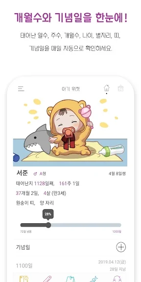 아기 개월수 계산 위젯으로 언제 어디서나 아기 정보를 손쉽게 확인하며, 행복하고 건강한 육아를 경험해보세요.