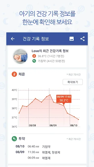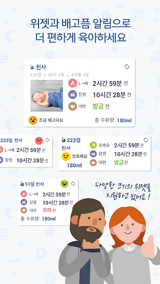 특히 내장형 공유 기능은 부모가 서로 정보를 즉시 공유할 수 있게 해 주어, 아빠가 아기를 돌보는 동안 엄마가 언제든지 아기의 상태를 확인할 수 있습니다. 또한, 수유, 수면, 배변, 건강 상태 등의 정보를 모두 기록할 수 있어, 아기의 일상을 한눈에 파악할 수 있습니다.