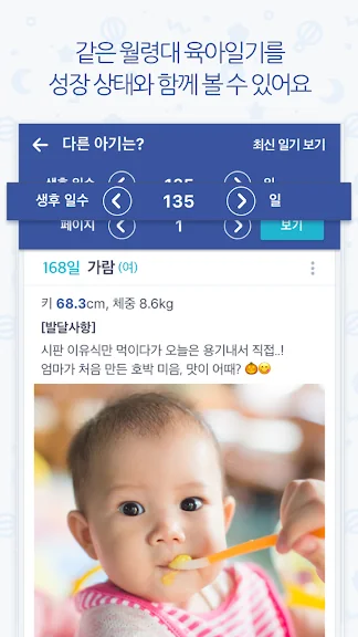 이 앱은 매일의 육아 일지를 사진으로 기록할 수 있는 기능과 함께, 아기의 발달 상태를 월령별로 체크할 수 있는 기능을 제공합니다. 또, 실시간 백업 기능 덕분에 어디에서든 안전하게 데이터를 복원할 수 있어 언제든지 아기의 성장 기록을 확인할 수 있습니다.