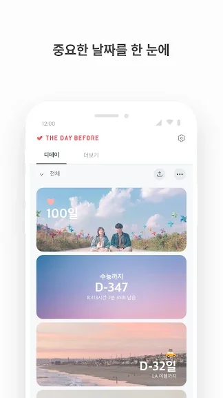 TheDayBefore(디데이 위젯) 어플은 당신의 소중한 순간들을 잊지 않도록 도와주는 스마트한 파트너입니다. 연인과의 기념일, 가족의 음력 생일, 중요한 시험 일정까지, 다양한 날짜를 간편하게 관리할 수 있습니다. 이 앱은 기본 디데이 계산 외에도 음력, 아기 개월수, 연/월/주 반복 계산 등 26가지의 계산 방법을 제공하여 어떤 상황에서도 맞춤형 정보를 제공합니다.