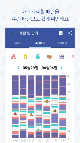 피요는 한 손으로 조작하기 용이하게 설계되어 있어 수유 중에도 편리하게 사용할 수 있습니다. 타임 바 기능으로 일자별 육아 일기를 한눈에 확인할 수 있으며, 주 단위로 그래프를 통해 아기의 상태 변화를 쉽게 분석할 수 있습니다. 다음 수유 시간을 미리 알려주는 기능 덕분에 수유를 놓치는 일도 없겠죠.