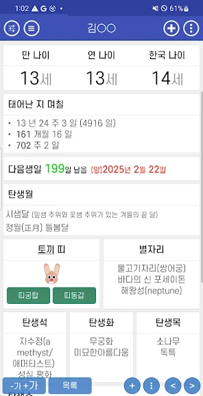 2) 만나이/음력생일/아기 개월수 어플 스크린샷