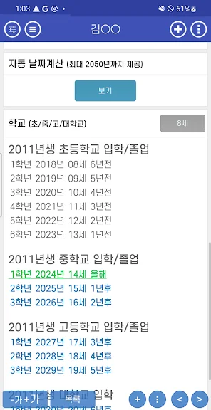 만나이/음력생일/아기 개월수 어플에 대한 스크린샷 정보가 필요하시다면 아래 이미지를 참고하시기 바랍니다.