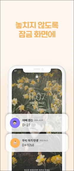 아기 위젯은 육아를 더욱 쉽고 편리하게 만들어주는 어플리케이션입니다. 아기 생일이나 출산 예정일을 등록하기만 하면, 일수, 주수, 개월수, 나이, 기념일 등을 매일 자동으로 확인할 수 있습니다. 상단바와 위젯 기능 덕분에 앱을 실행하지 않고도 정보를 빠르게 확인할 수 있으며, 중요한 기념일은 알림을 통해 잊지 않도록 도와줍니다.