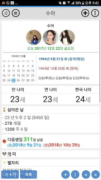 아래는 만나이/음력생일/아기 개월수 어플에 대한 스크린샷 정보입니다.