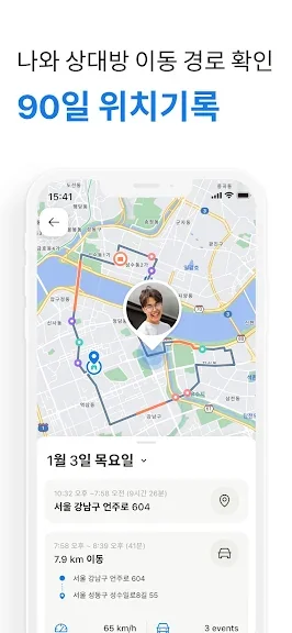 아이쉐어링의 주요 장점은 배터리 소모를 최소화하면서 실시간 위치를 정확하게 제공한다는 점입니다. 워키토키 기능을 통해 음성 메시지를 무료로 주고받을 수 있으며, 90일간의 위치 기록을 확인할 수 있어 더욱 세밀한 관리가 가능합니다. 또한, 휴대전화 분실 시 실시간 위치 추적으로 신속한 복구를 도와줍니다.