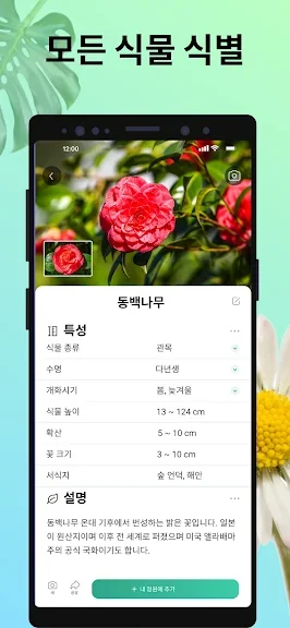 이 앱은 꽃, 나무, 잎, 과일 등 다양한 식물을 인식하며, 일반 이름뿐만 아니라 과학적 이름, 상세 설명, 보충 이미지를 제공합니다. 또한, 버섯과 약초까지 식별 가능해 자연에 대한 깊은 이해를 돕습니다. 나만의 식물 기록을 저장하며 지속적으로 관리할 수도 있습니다.