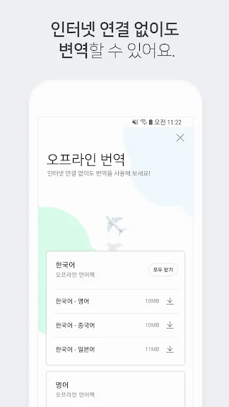 인터넷이 연결 없이도 텍스트 번역 사용