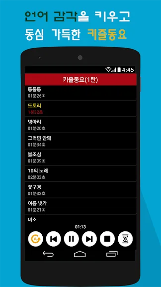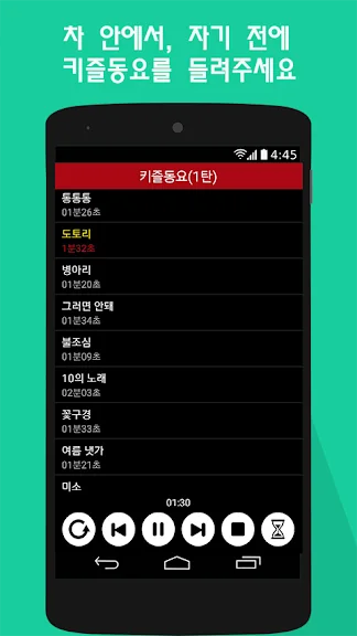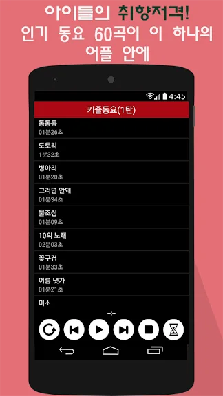 - 쉬운 사용법: 터치 한 번으로 바로 동요를 재생하고, 무한 반복 기능을 통해 지속적으로 즐길 수 있습니다.