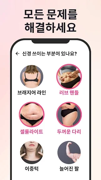 살 빼기 운동은 뱃살, 허벅지, 팔뚝, 엉덩이 등 여성들이 신경쓰는신체 부위를 모두 다룹니다. 신경쓰이는 부위에 집중하고, 스마트하게 운동하여 지방 연소를 극대화하세요.
