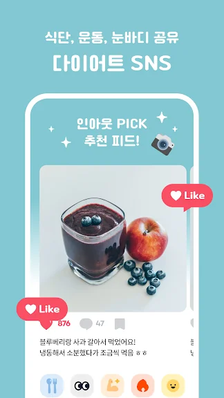 - 내 식단과 레시피, 일상, 운동, 눈바디, 자극짤까지 피드로 간편하게 공유할 수 있어요