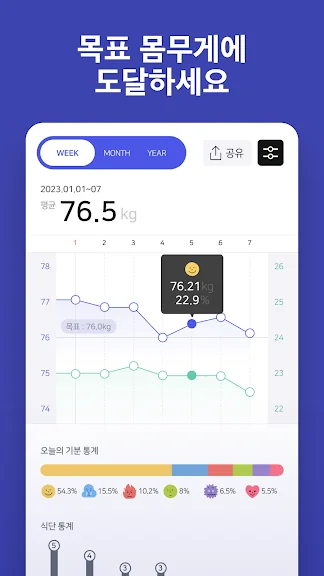 - 내 몸무게 그래프를 트레이너나 주변 사람에게 공유할 수 있어요.