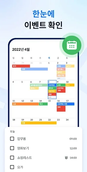 - 강력한 알림 기능 : 시간 알람, 종일 알림, 반복 설정.(음력 지원)