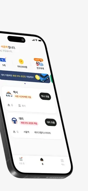 : 앱으로 간단하게 대리운전을 호출하며, 프리미엄 기사의 편안한 운전과 스마트한 요금 제안으로 빠른 배차를 제공