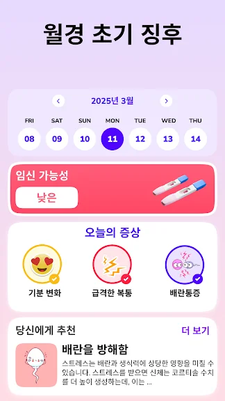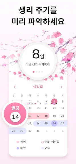 🌸 생리주기: 생리 달력을 통해 사용자는 배란 및 월경 주기를 기록하고 생리 예정일에 대한 알림을 받을 수 있습니다, 생리어플.