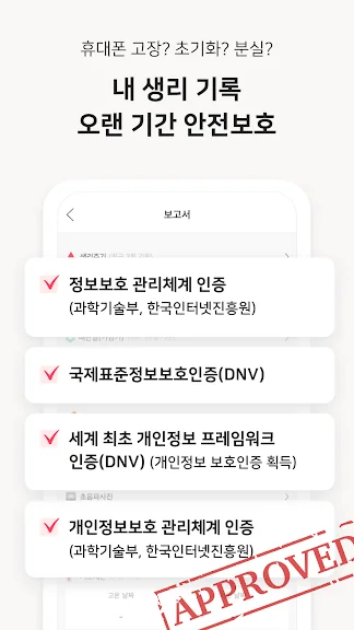 아래는 생리 달력 - 생리 주기 관리 어플에 대한 스크린샷 정보입니다.