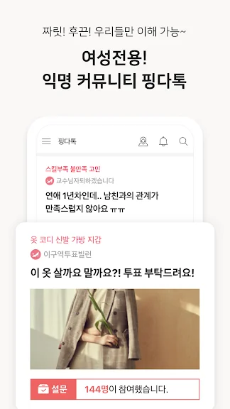 ▶︎ 비밀 보장 여성 익명 커뮤니티 '핑다톡' !