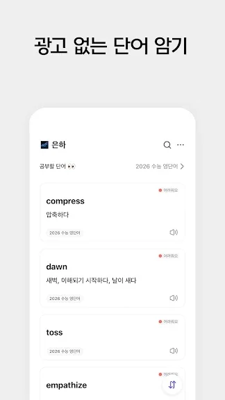 영어 공부. 기초, 고급 영어 단어 배우세요! 어플에 대한 스크린샷 정보가 필요하시다면 아래 이미지를 참고하시기 바랍니다.