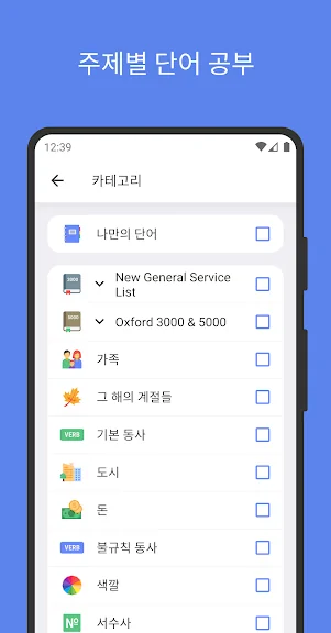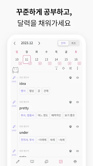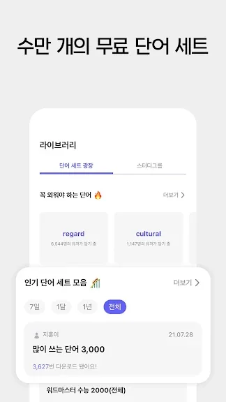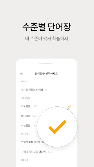 사용자의 수준에 맞게 학습할 수 있도록 초급부터 고급까지 다양한 영어 단어장을 제공하고 있습니다.