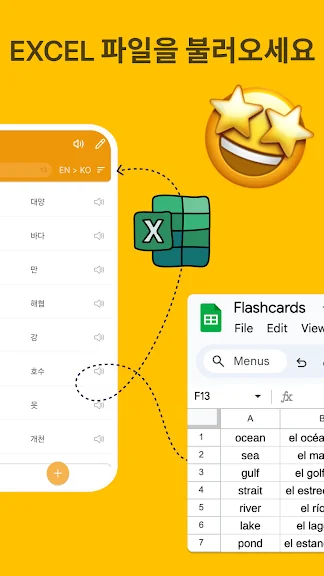 선생님들: 엑셀 파일로 단어장을 만들어 학생들에게 간편하게 배포하고, 여러 외국어 공부를 지원하세요. 학생들이 새로운 언어의 세계를 탐험할 수 있도록 도와주세요.