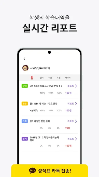 6. 학생 성적표, 녹음결과는 카톡으로 편리하게 전송(PRO 기능)