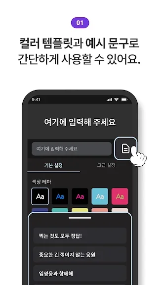 - 문구 저장 : 5개의 문구를 저장하고 불러올 수 있어요.