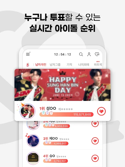 최애에게 투표하고, 순위를 올리고, 광고를 선물하고, 팬들과 함께 소통하세요.