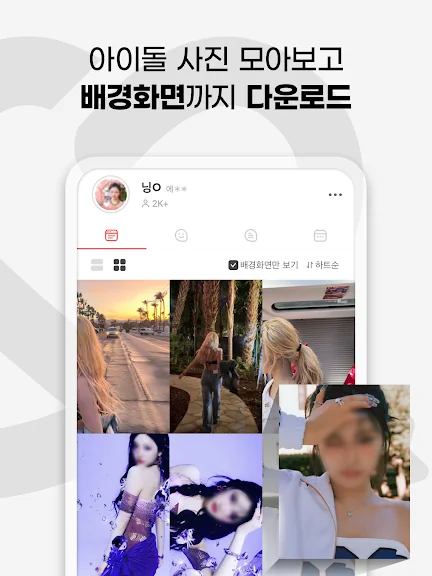 - 광고 없이 스마트폰 배경화면 사이즈에 최적화된 연예인 사진과 배경화면을 저장할 수 있어요.