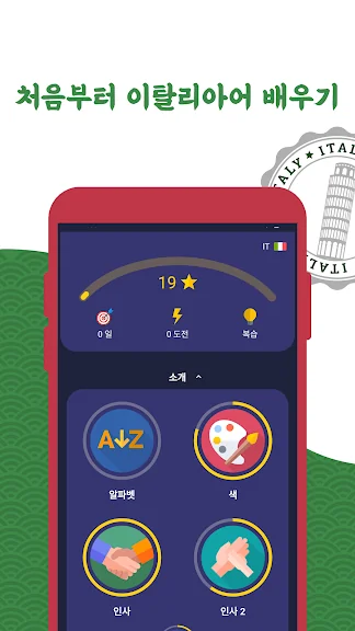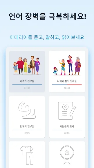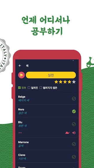 초보자를 위한 이탈리아어 앱을 이용해 이탈리아어 단어를 학습해보세요. 이탈리아어 공부가 이렇게나 쉽고 간단할 수 없습니다!