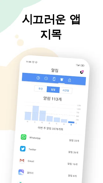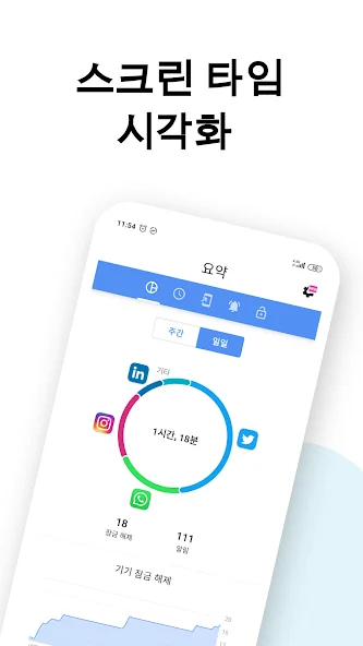 - 사용 시간: 전체 스마트폰 사용 시간과 각 앱의 사용 시간을 자세히 확인할 수 있습니다.